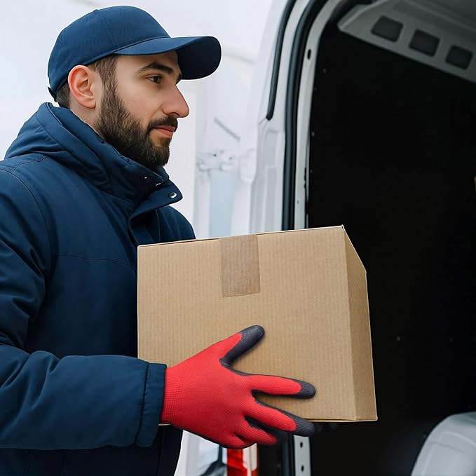 KAYGO Winter Work Gloves for Men and Women, 12 Pairs Thermal Insulated Safety Work Gloves PU Coated, Smooth Grip on Palm & Fingers,Ideal for Freezer Work,Red,M