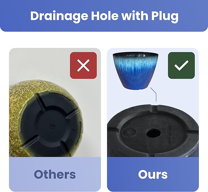 - Built-in Drainage: Plastic glazed planter featuring built-in drainage holes, with a removable plug on the bottom to drain water and prevent overwatering.