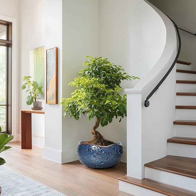 Bonsai Pots - 13 Inch Large Ceramic Planter for Indoor Outdoor, Round Decorative Plant Pots with Drainage Hole, Modern Unique Flower Pots, Patio Decor, Housewarming Gifts, Retro Blue