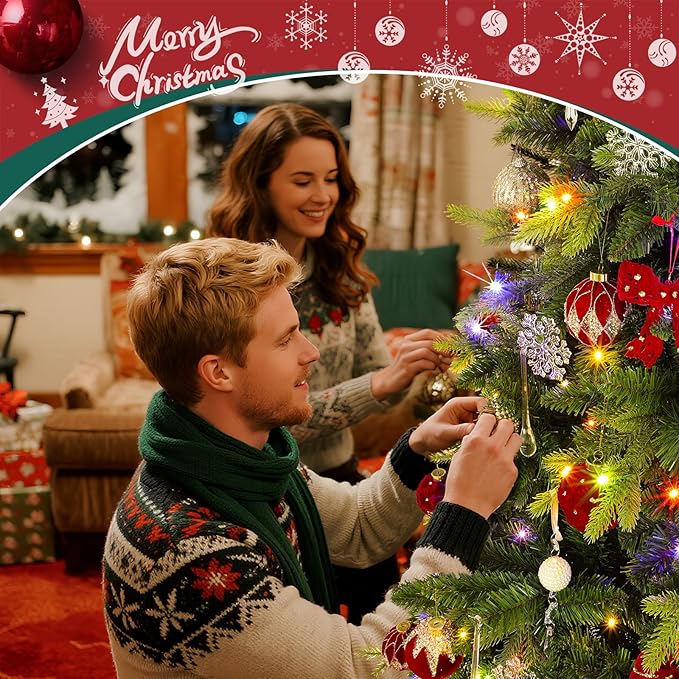 - Quick Assembly & Sturdy Stand – The hinged branch design enables rapid setup, while the heavy-duty base guarantees stability. The artificial christmas trees package includes a pair of gloves for installation, ensuring your safety and convenience.