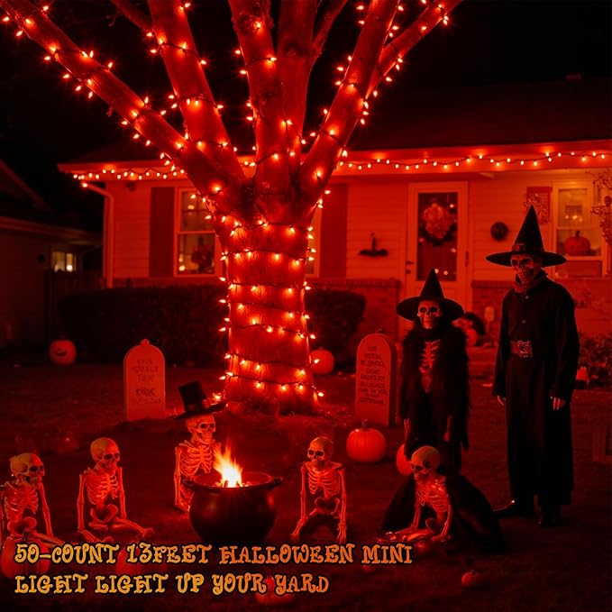 - Connectable Orange Lights for Halloween: With end-to-end sockets, these orange outdoor lights can be extended up to 10 sets for a total coverage of 130 ft, meet different decoration needs. Hang them on porches, gazebos, fences, patios, bedrooms, or fireplaces to effortlessly create a warm and festive atmosphere.. Perfect for Halloween, Thanksgiving Day, Christmas Use.