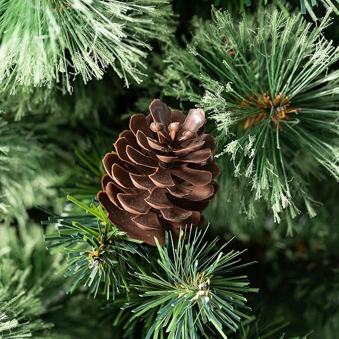 - 🎄【REALISTIC LOOK】-Increase the beauty and light up your home with this 7 FT tall Christmas tree with 200 warm white/multicolor lights. With individually crafted 440 branch tips, decked with 24 pine cones, this full bodied Xmas trees is as charming as the real. Our time-tested needles are fire resistant and non-allergenic.