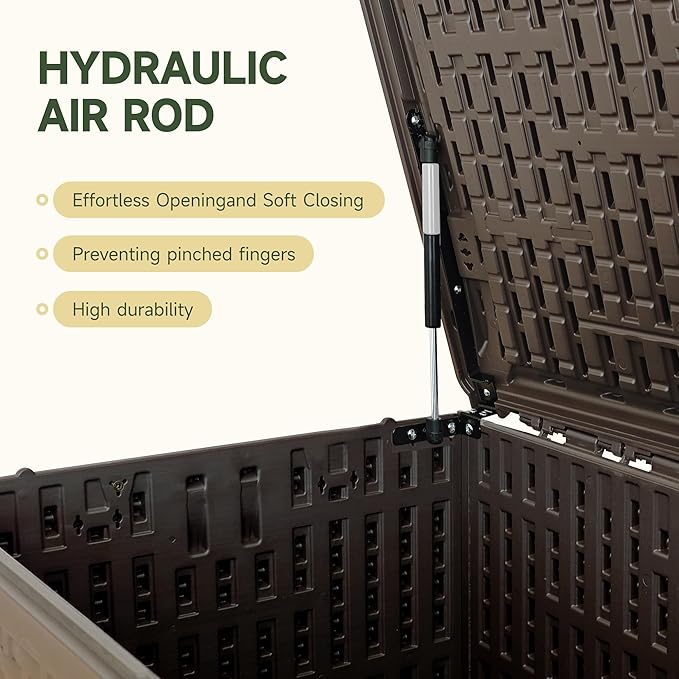 - SAFE HYDRAULIC LID: Equipped with an integrated gas strut, it allows effortless one-handed opening and a smooth, controlled close—preventing finger pinches and shielding contents from sudden impacts.