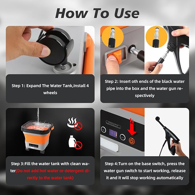 - ใ๐๐ผ๐น๐ฑ๐ถ๐ป๐ด ๐ฃ๐ผ๐ฟ๐๐ฎ๐ฏ๐น๐ฒ ๐ฃ๐ฟ๐ฒ๐๐๐๐ฟ๐ฒ ๐ช๐ฎ๐๐ต๐ฒ๐ฟใFoldable water tank design, 3.5 gallons of capacity๏ผ13L) when unfolded, folded to only 4.3*12.6*12.6 inches,easy to pack in trunk. equipped with 4 universal wheels, you can carry it by hand or drag it, convenient and easy to use