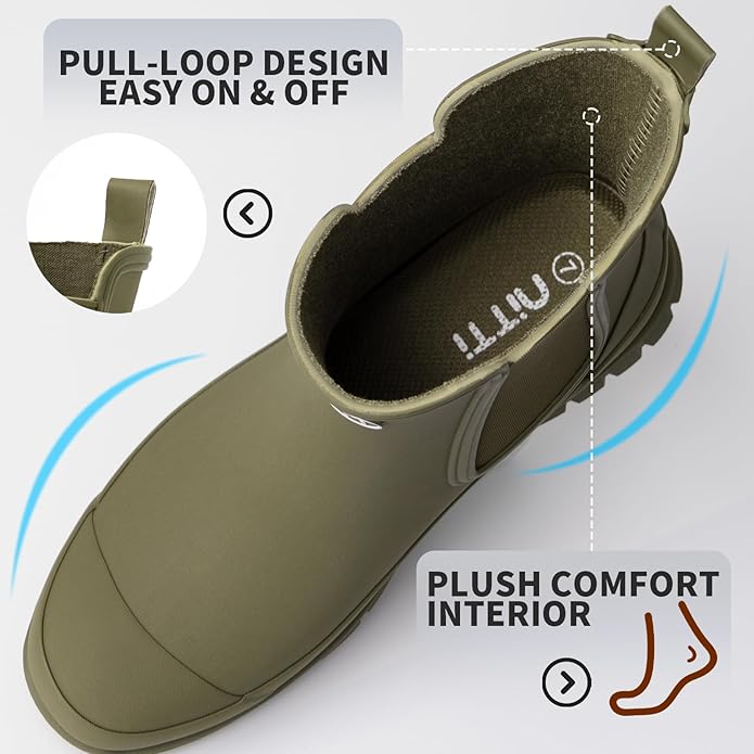NITTI Women's Waterproof Short Rain Boots Slip-Resistant Rubber Chelsea Garden Shoes with Comfort Insole
