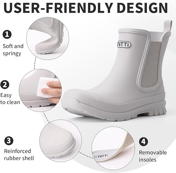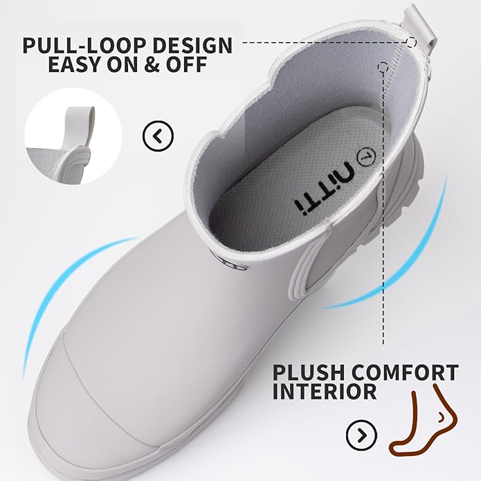 NITTI Women's Waterproof Short Rain Boots Slip-Resistant Rubber Chelsea Garden Shoes with Comfort Insole
