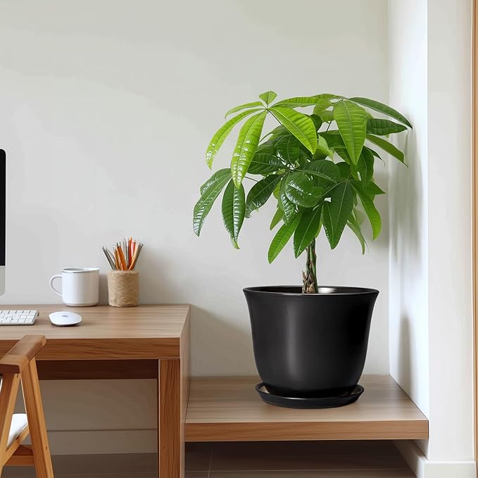 - Ideal Size: These ceramic pots for plants measure 10.0" x 10.0" x 8.5" and comes with drainage holes, a plant saucer, a drainage net, creating a healthier environment for plants while keeping your space neat and clean