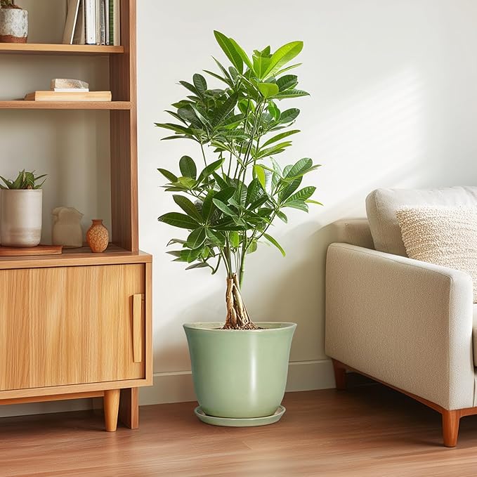 - Ideal Size: These ceramic pots for plants measure 10.0" x 10.0" x 8.5" and comes with drainage holes, a plant saucer, a drainage net, creating a healthier environment for plants while keeping your space neat and clean