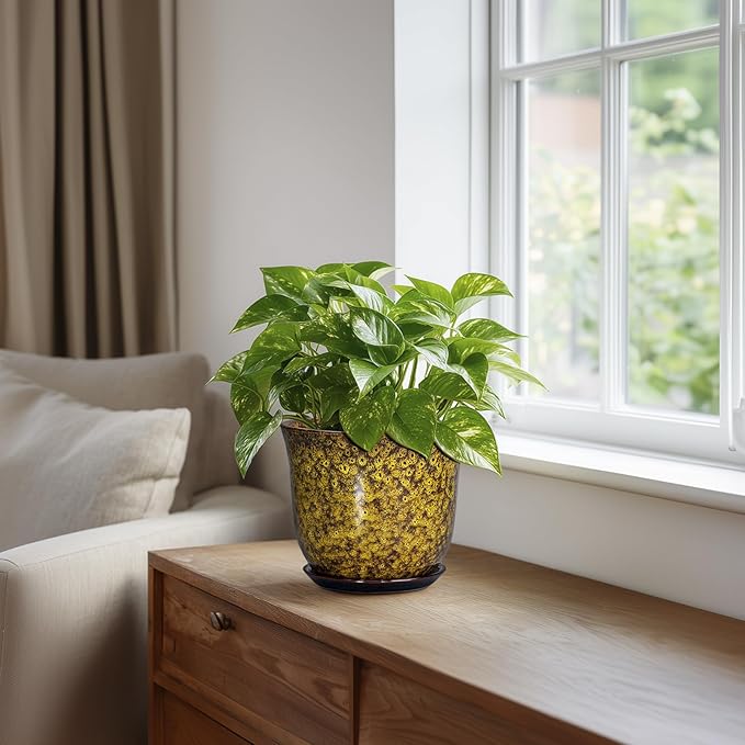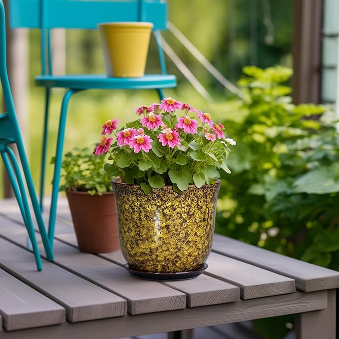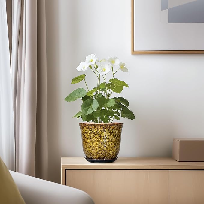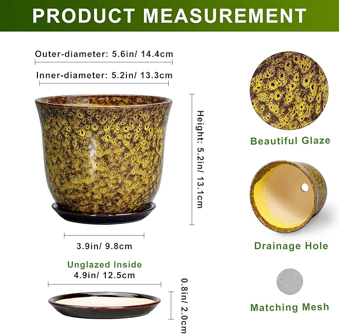 - Ideal Size: This flower pot measures 5.6'' x 5.6'' x 5.2'' and comes with drainage holes and a ceramic saucer, creating a healthier environment for plants while keeping your space neat and clean