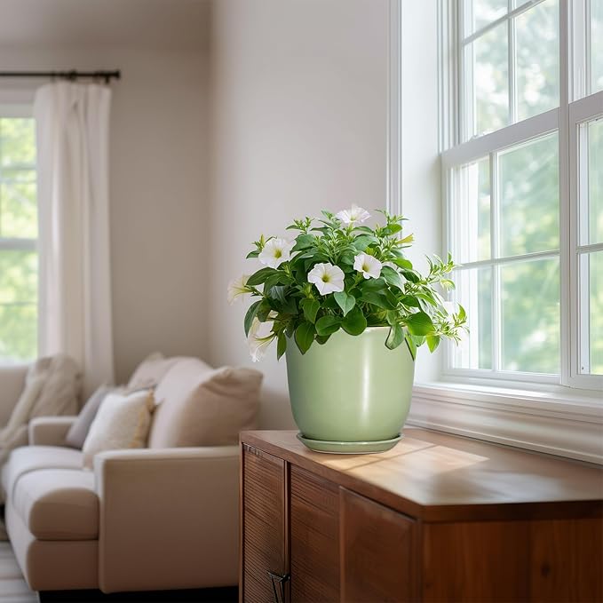 - Ideal Size: This ceramics pots for plants measures 8.0" x 8.0" x 6.9" and comes with drainage holes, a plant tray, a drainage net, creating a healthier environment for plants while keeping your space neat and clean