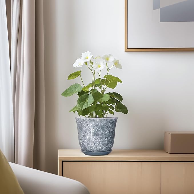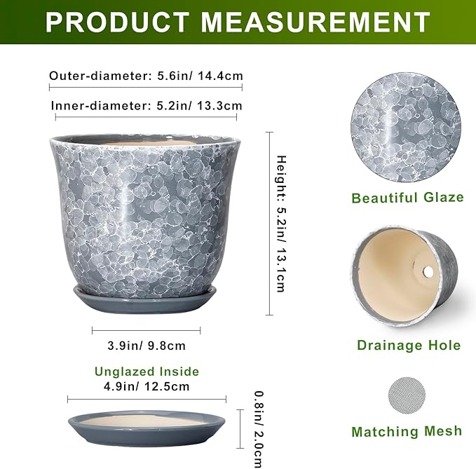 - Ideal Size: This ceramic plant pot measures 5.6'' x 5.6'' x 5.2'' and comes with drainage holes and a ceramic saucer, creating a healthier environment for plants while keeping your space neat and clean
