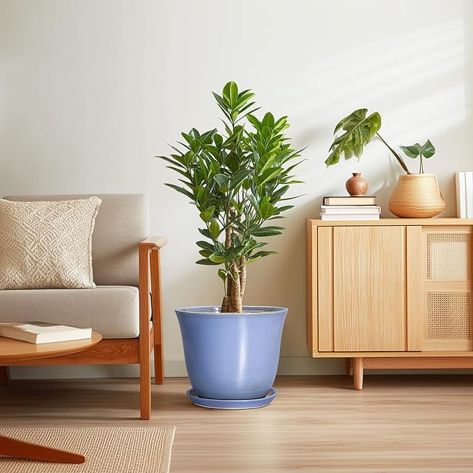 - Ideal Size: These ceramic pots for plants measure 12.4" x 12.4" x 10.3" and comes with drainage holes, a ceramic plant saucer, a drainage net, creating a healthier environment for plants while keeping your space neat and clean