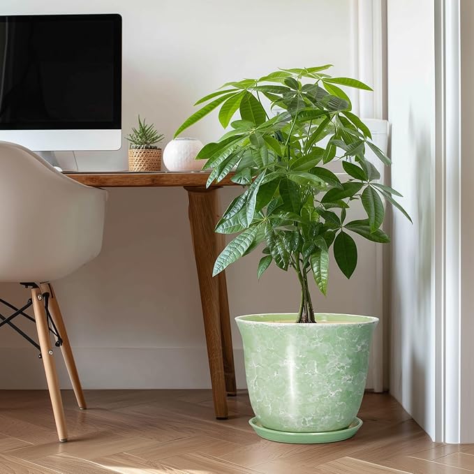 - Ideal Size: These ceramic pots for plants measure 12.4" x 12.4" x 10.3" and comes with drainage holes, a ceramic plant saucer, a drainage net, creating a healthier environment for plants while keeping your space neat and clean