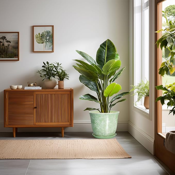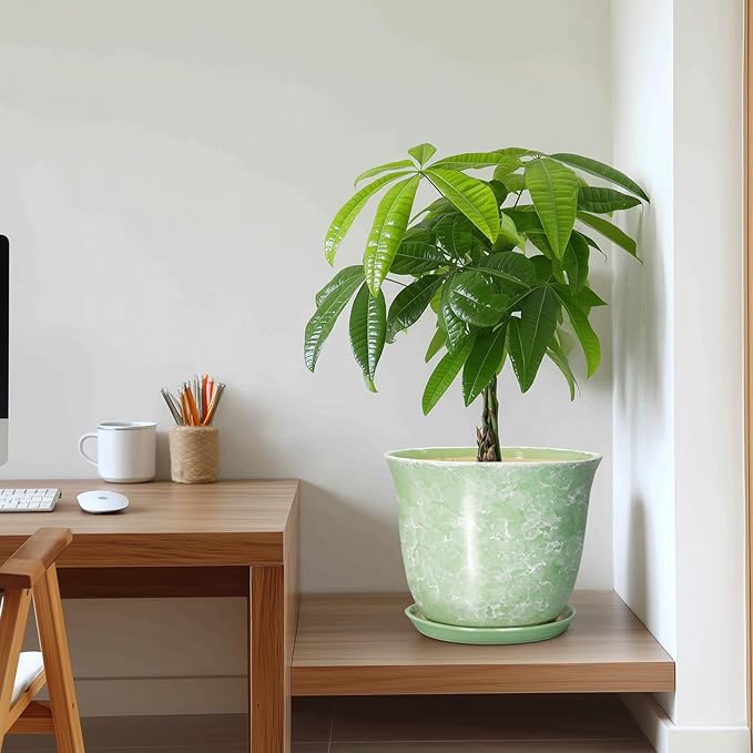- Ideal Size: These ceramic plant pots measure 10.0" x 10.0" x 8.5" and comes with drainage holes, a plant saucer, a drainage net, creating a healthier environment for plants while keeping your space neat and clean