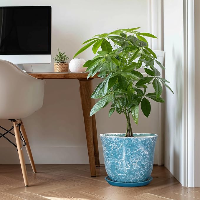 - Ideal Size: These ceramic pots for plants measure 12.4" x 12.4" x 10.3" and comes with drainage holes, a ceramic plant saucer, a drainage net, creating a healthier environment for plants while keeping your space neat and clean