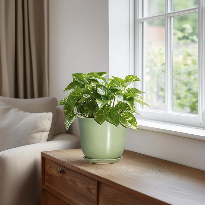 - Ideal Size: This ceramic pots for plants measure 5.6'' x 5.6'' x 5.2'' and comes with drainage holes and a ceramic saucer, creating a healthier environment for plants while keeping your space neat and clean
