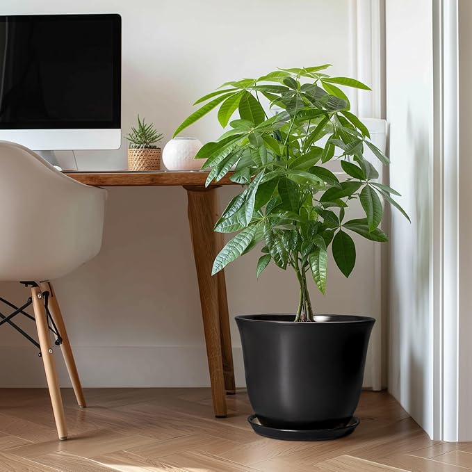 Ceramic Plant Pots - 12 Inch Plant Pot for Indoor Plants Outdoor, Large Planter with Drainage Hole and Saucer, Round Planters, Modern Flower Pot, Garden Patio Home Decor, Garden Gift, Black