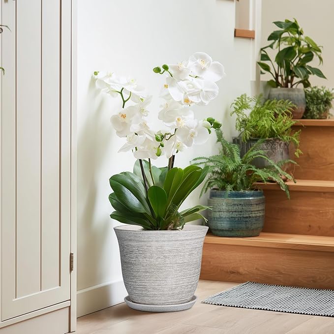 - Ideal Size: These ceramic plant pots measure 10.0" x 10.0" x 8.5" and comes with drainage holes, a plant saucer, a drainage net, creating a healthier environment for plants while keeping your space neat and clean