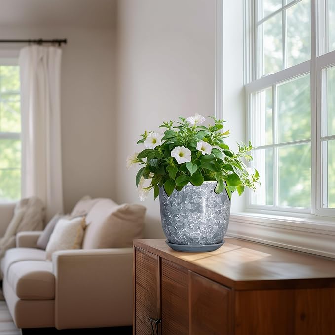 - Ideal Size: This ceramics pots for plants measures 8.0" x 8.0" x 6.9" and comes with drainage holes, a plant tray, a drainage net, creating a healthier environment for plants while keeping your space neat and clean