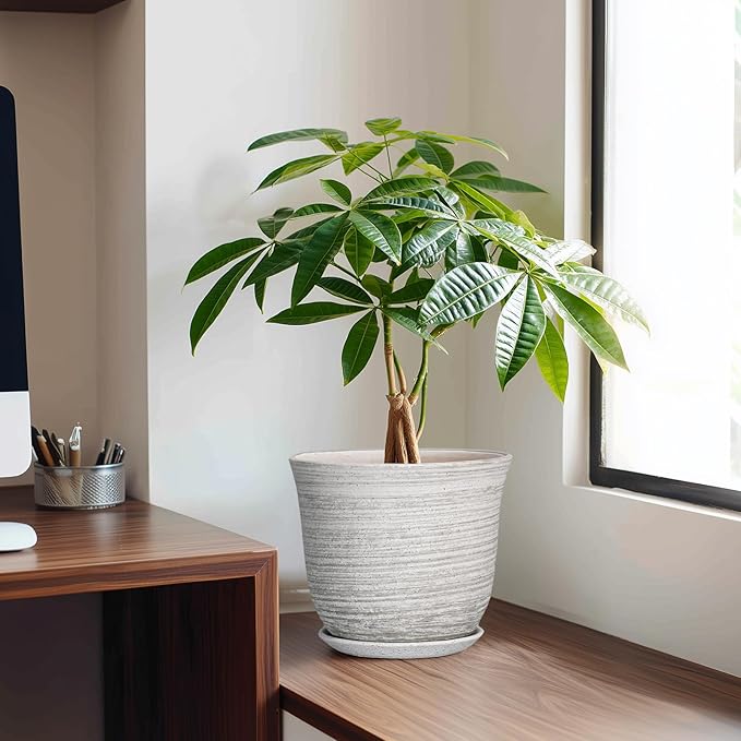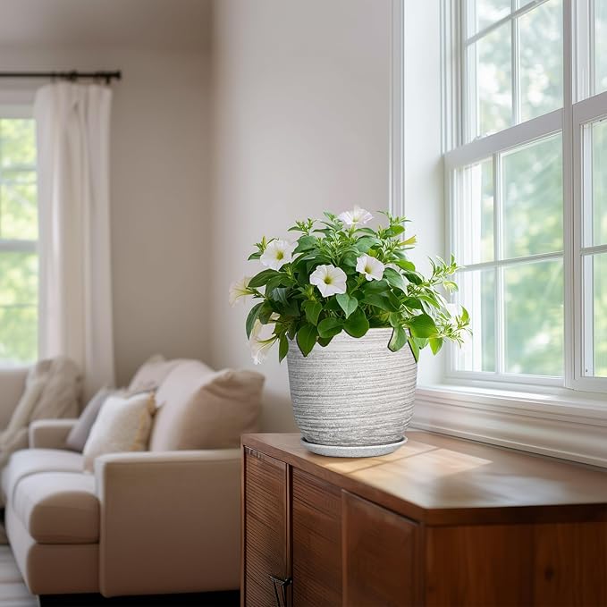 - Ideal Size: This ceramics pots for plants measures 8.0" x 8.0" x 6.9" and comes with drainage holes, a plant tray, a drainage net, creating a healthier environment for plants while keeping your space neat and clean