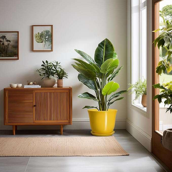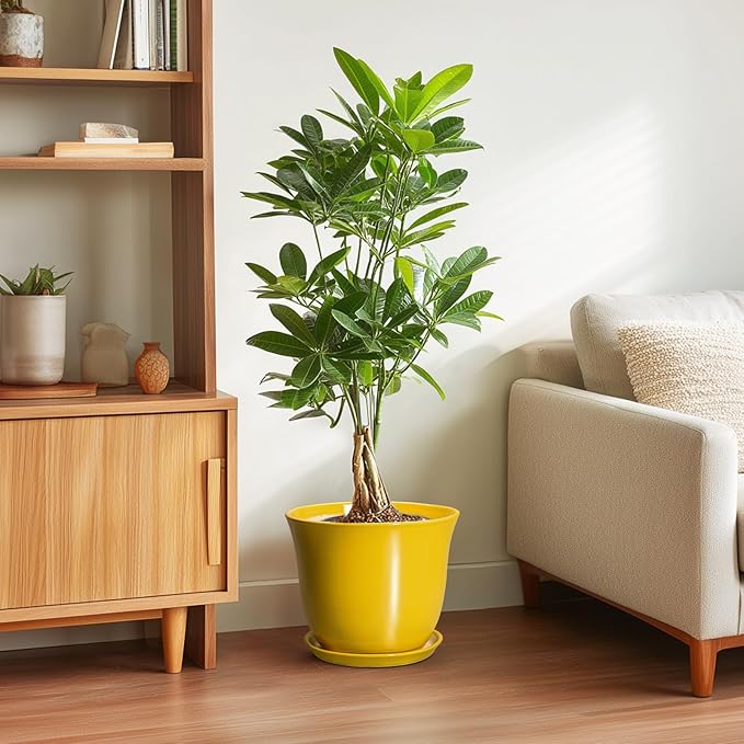 Ceramic Planter - 10 Inch Plant Pot for Indoor Outdoor, Round Flower Pots with Drainage Hole and Saucer, Large Plant Pot, Modern Planters, Home Room Decor, Gifts for Plants Lovers, Yellow