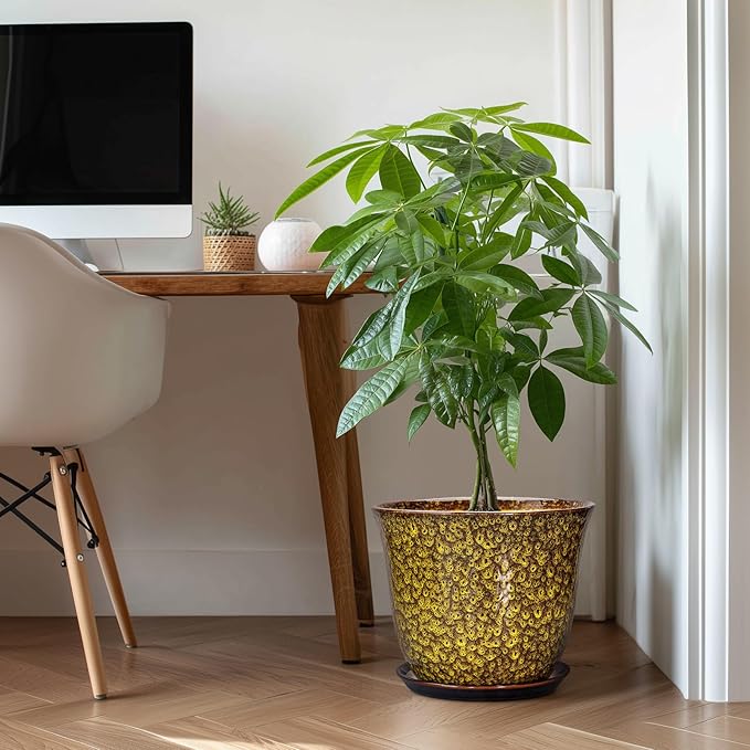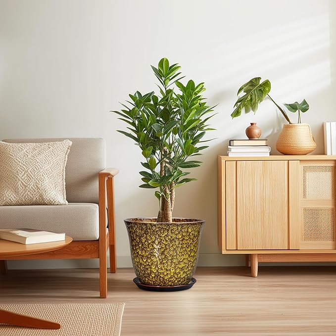 - Ideal Size: These ceramic pots for plants measure 12.4" x 12.4" x 10.3" and comes with drainage holes, a ceramic plant saucer, a drainage net, creating a healthier environment for plants while keeping your space neat and clean