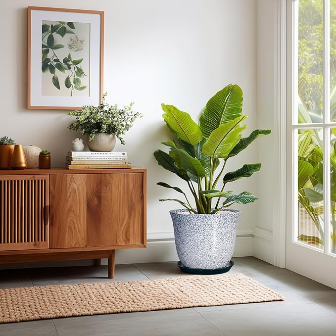 - Ideal Size: These ceramic pots for plants measure 12.4" x 12.4" x 10.3" and comes with drainage holes, a ceramic plant saucer, a drainage net, creating a healthier environment for plants while keeping your space neat and clean