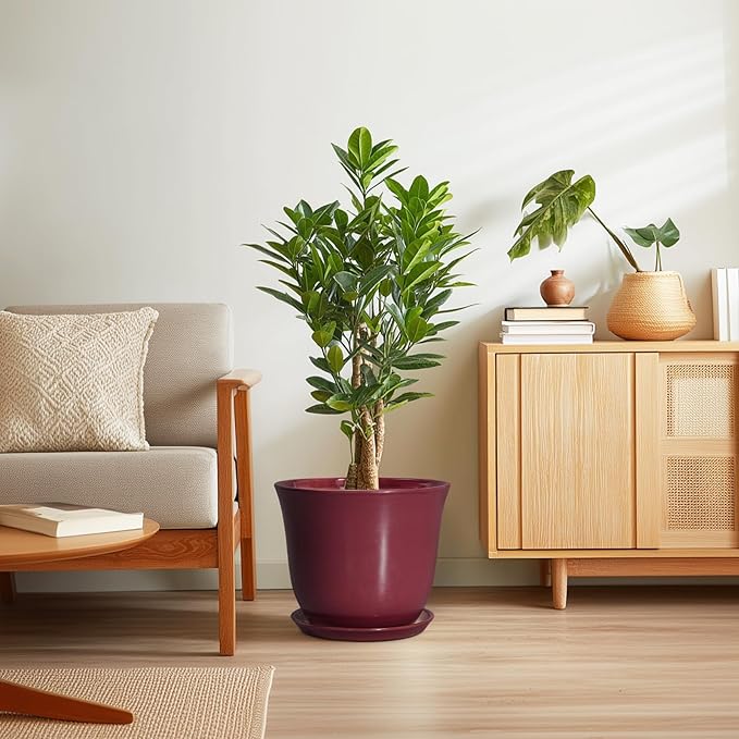 - Ideal Size: These ceramic pots for plants measure 12.4" x 12.4" x 10.3" and comes with drainage holes, a ceramic plant saucer, a drainage net, creating a healthier environment for plants while keeping your space neat and clean