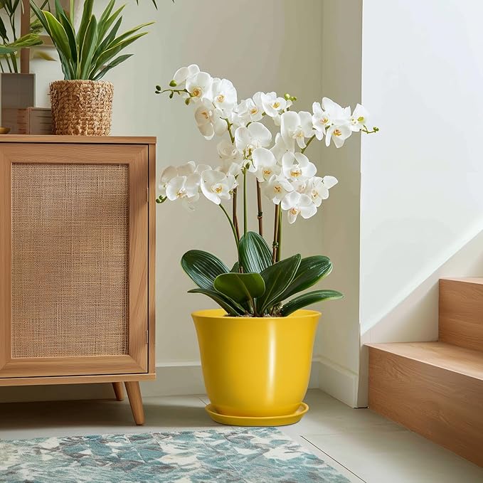 12 Inch Plant Pot - Ceramic Plant Pots with Drainage Hole and Saucer, Large Round Planter for Indoor Outdoor, Modern Flower Pot, Decorative Planters, Home Garden Decor, Garden Gifts, Yellow