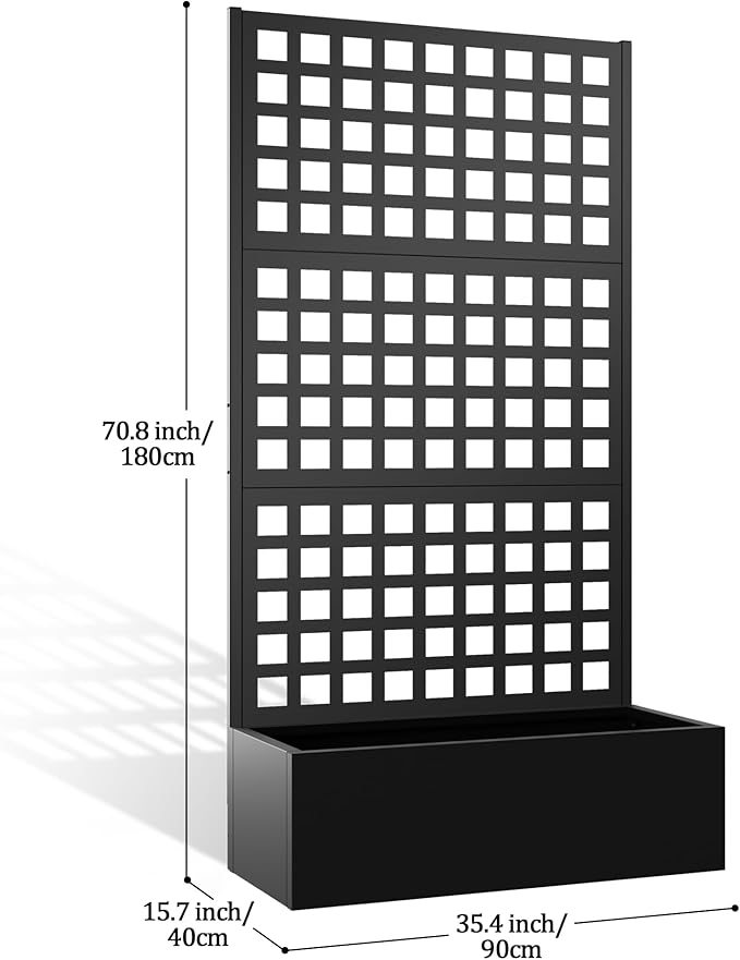 - Sturdy Metal Structure: Reinforced metal frame with clean design offers modern style and strength. This stable and simple planter with trellis is engineered for stability and simplicity, serving as an outdoor decorative lattice and functional planter—even a privacy screen planter.