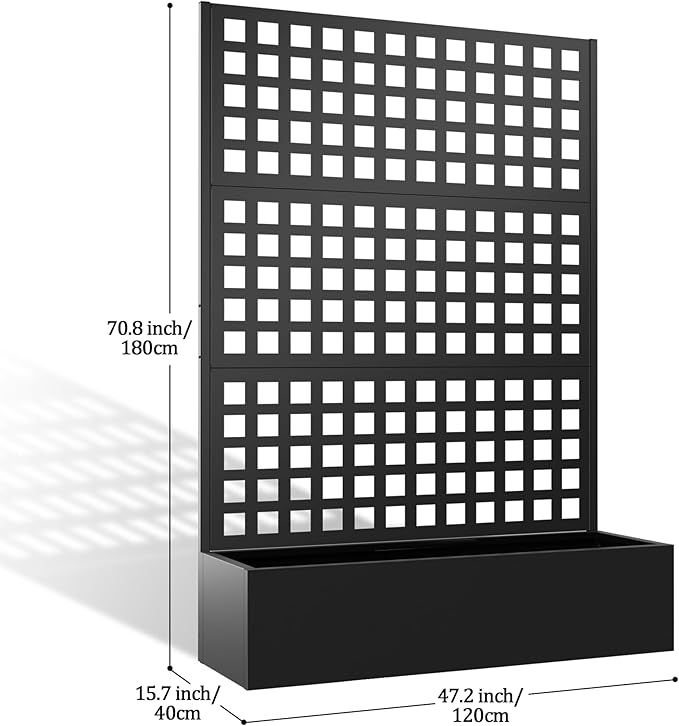 - Sturdy Metal Structure: Reinforced metal frame with clean design offers modern style and strength. This stable and simple planter with trellis is engineered for stability and simplicity, serving as an outdoor decorative lattice and functional planter—even a privacy screen planter.