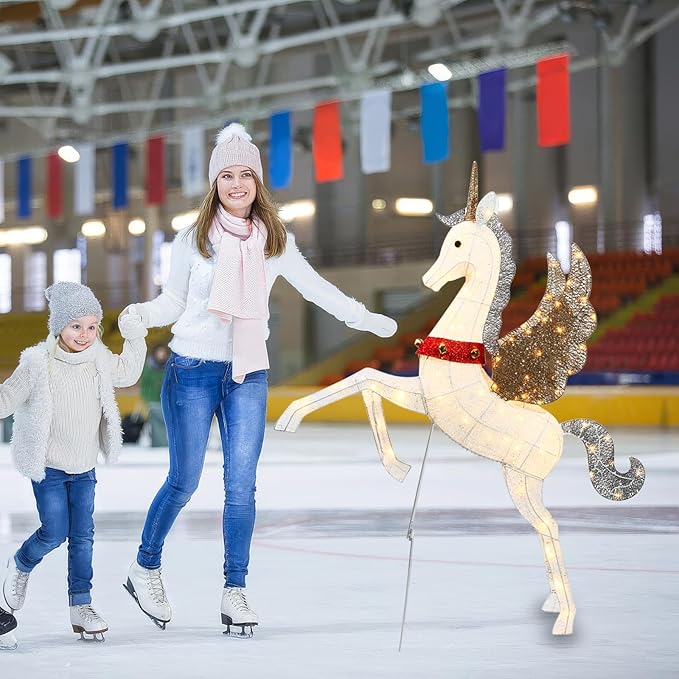 - Versatile Indoor and Outdoor Use: Whether you’re looking to brighten up your yard, porch, or indoor space, this versatile lighted yard unicorn decoration adds a festive touch to any location, making it a must-have for your holiday décor