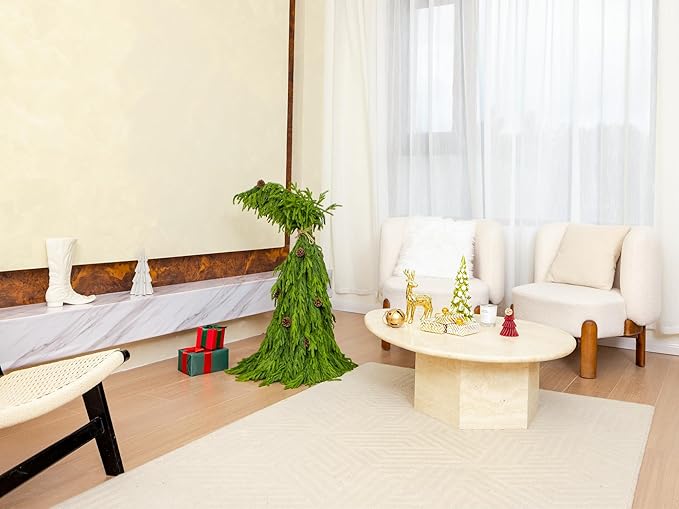 - 【No assembly required】Our crooked neck small Christmas tree needs no installation. Simply spread out its pine branches and place it where you want to decorate, and it will create a cozy Christmas atmosphere.