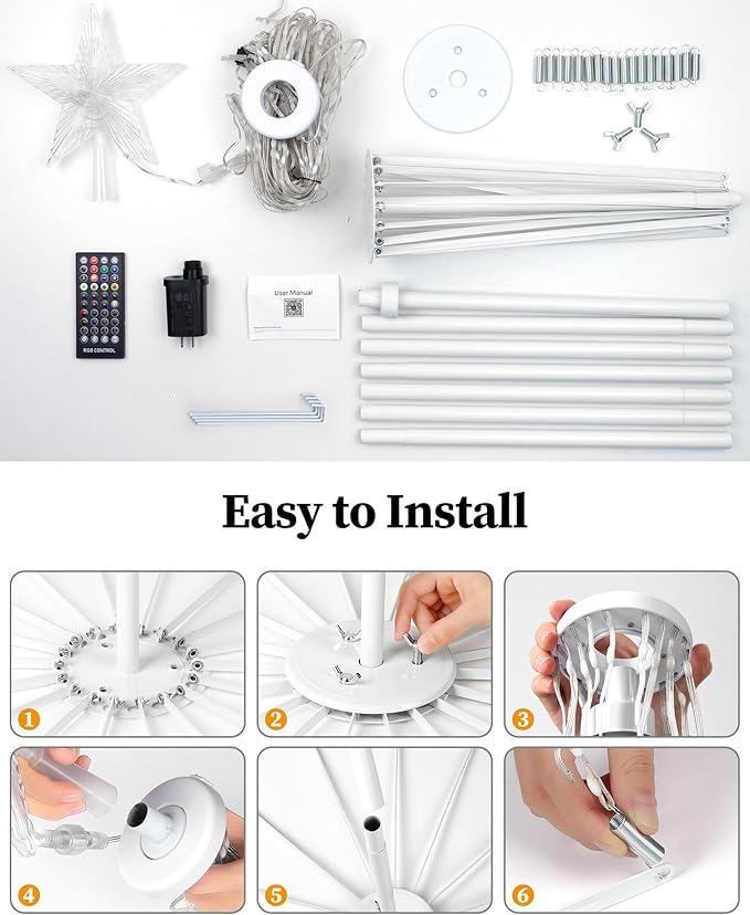- Music Sync Feature: The outside Christmas tree is equipped with a built-in microphone (within the white IR receiver) and supports app-based audio control, syncing its dazzling lights to your music's rhythm. This creates an immersive audio-visual experience that enhances parties and gatherings, turns your space into a captivating entertainment zone—nice for Xmas carols or dance tunes. Notes: For the best music sync performance, we recommend using the APP for more precise and responsive control
