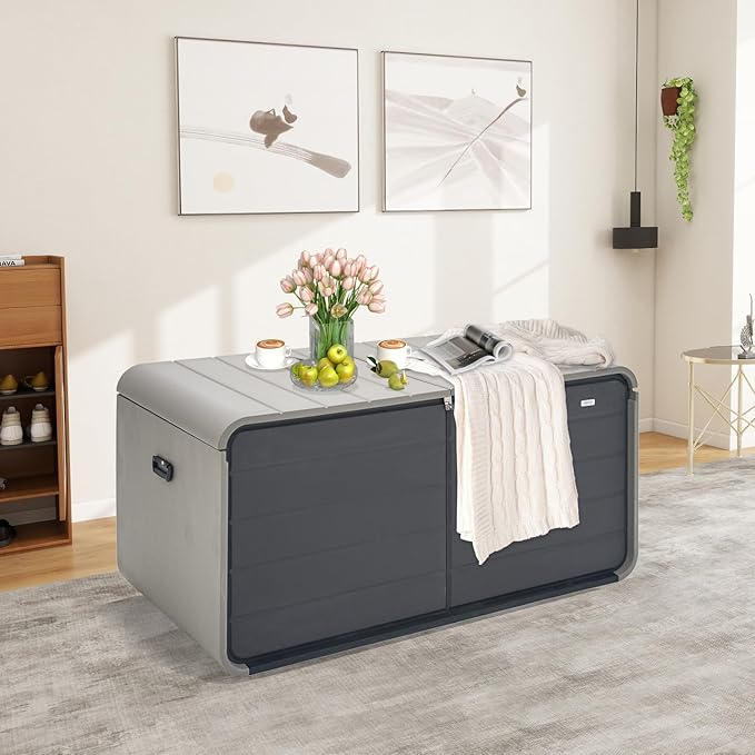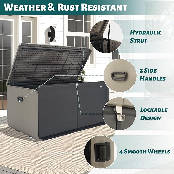 - Multi-Functional & Stylish – More than just a storage solution, this versatile deck box doubles as a sturdy bench or side table. Its sleek design blends seamlessly into your patio, deck, or garden while offering extra seating or surface space when needed.
