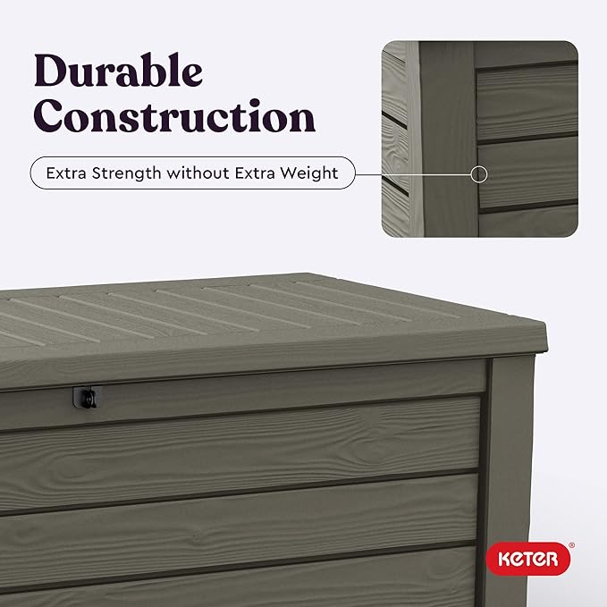 Keter Westwood 150 Gallon Resin Large Outdoor Storage Box for Patio Furniture, Outdoor Cushions, Garden Tools and Pool Floats, Mossy Brown