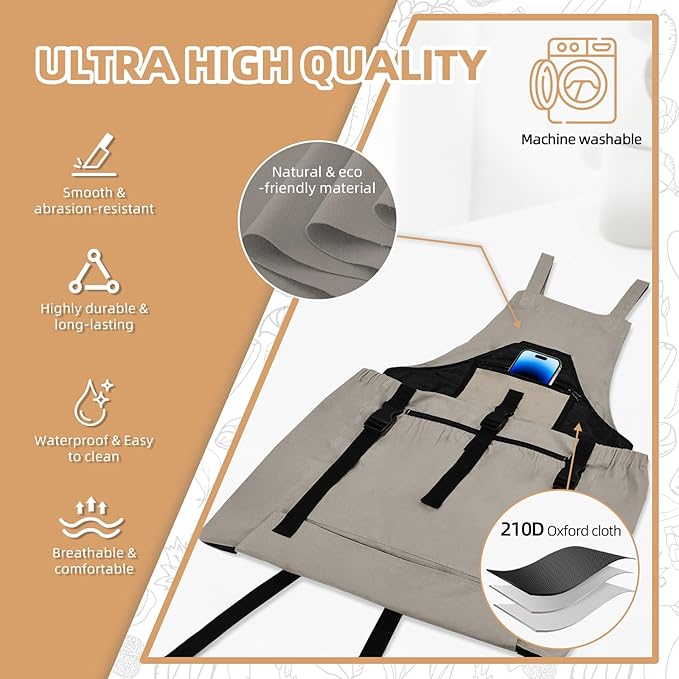 - Premium Cotton Canvas & Comfortable: Made from soft cotton canvas + 210D waterproof oxford fabric, this gardening apron keeps you dry and comfortable while working outdoors. The breathable material prevents overheating, and the water-resistant layer protects against dirt and stains—perfect for harvesting vegetables, planting, or messy garden tasks.