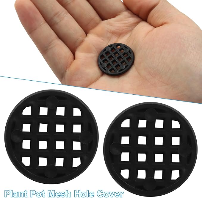 - Package included: 100pcs plant pot mesh hole cover. Diameter: 0.97"/24.7mm, thickness: 0.05"/1.5mm.