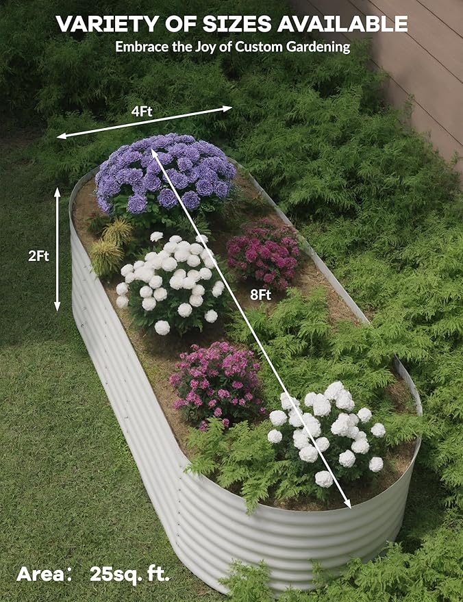 - 【Quick-Assembly Raised Beds Outdoor】This galvanized raised garden bed kit includes all tools for easy setup. The smooth surfaces make maintenance simple, ideal for growing vegetables, flowers or herbs in your outdoor garden box.