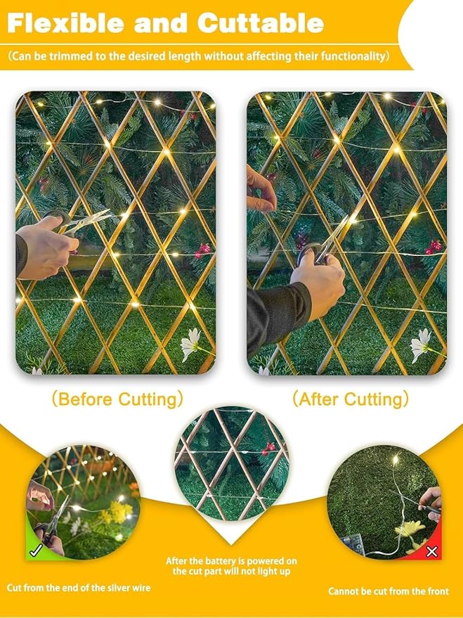 - Flexible and Cuttable Inspiring Infinite Creativity: The sturdy and bendable silver wire can still be used after cutting. The battery-operated fairy lights easily achieve heart-shaped, star, moon, letter shapes, etc. Whether it's for weddings, dollhouses, posters, photo frames, parties, creative gifts, or other decorations, every inspiration you have can be perfectly presented.