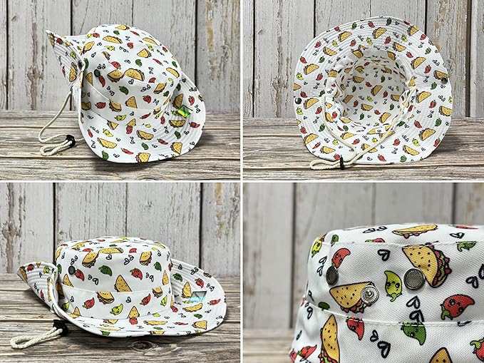 - Find Your Style: Add a zesty twist to your outdoor look with our reversible wide brim fisherman bucket hat featuring a playful taco and cute smiling red, green, and yellow chili peppers pair perfectly with doodle hearts on a crisp white background, creating a fun and quirky vibe that's sure to turn heads. Whether you're a taco lover, spice enthusiast, or just want a fun food-themed sun hat, this design brings joy to every sunny day—perfect for beach outings, picnics, festivals, or BBQs.