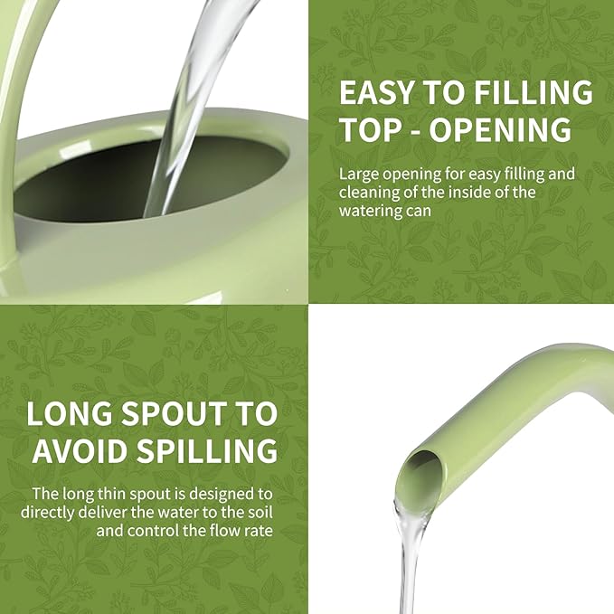 - [Long Precision Spout] Our watering can for indoor plants comes with a long, narrow spout that effortlessly reaches deep into plant roots, even under dense leaves. It delivers water precisely to target areas, avoiding splashing or overwatering—perfect for indoor plants, bonsai, and hard-to-reach spots in gardens. The fixed spout (non-removable) ensures stable water flow, making every watering efficient and mess-free.