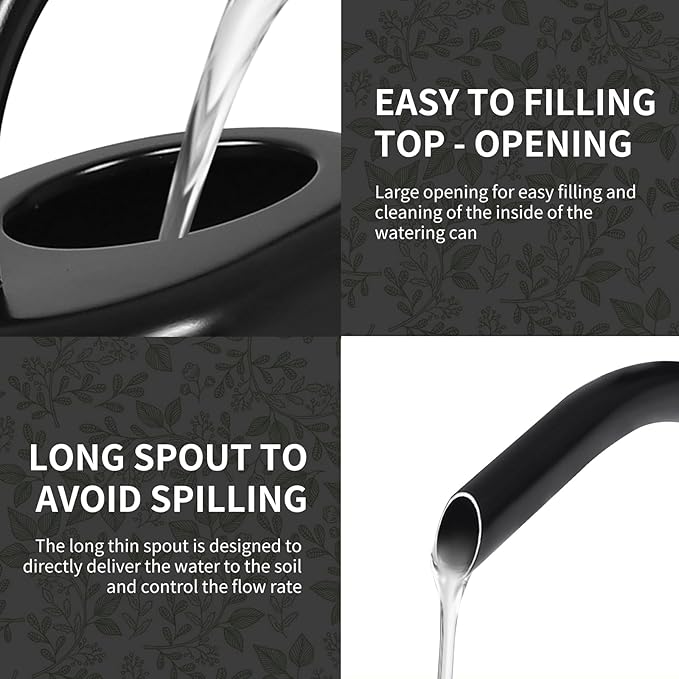 - [Wide Mouth Opening] Our plant watering can's top features a wide top opening for quick, hassle-free water refills. Easy to clean and prevents spills during filling, complementing the stainless steel design for practical daily use.