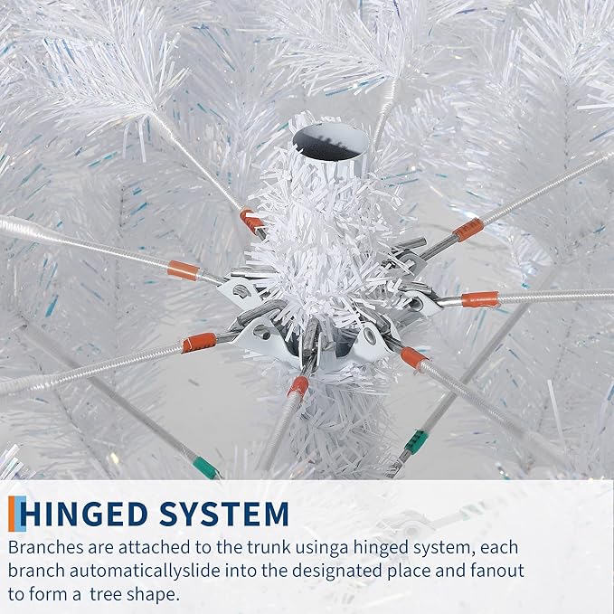 - Easy Setup & Convenient Storage: Setting up this prelit white Christmas tree is simple—connect the sturdy base, stack the sections, and fluff the hinged branch quickly Once the festivities are over, simply detach the segmented trunk into sections for compact storage, making it easy to tuck away until next year