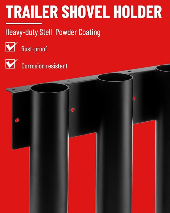 - Weather-Resistant: Forged from heavy-duty steel, this trailer tool rack resists deformation and is powder-coated to provide superior protection against rust and most weather conditions.