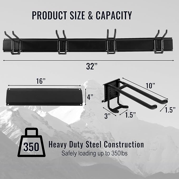 - HEAVY DUTY STEEL & SAFETY : Garage Storage rack can totally hold up to about 350 lb , Garden tool wall mount storage rack is made of high-strength steel for sturdy and strong organization.