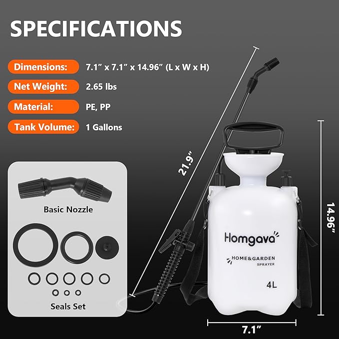 - 【Wide Application】Our pump pressure sprayer perfectly meets various needs such as indoor and outdoor plant care, car washing, pet bathing, garden watering, and household cleaning. Furthermore, it comes with an extra spray nozzle and a bag of O-rings for easy maintenance and upkeep.