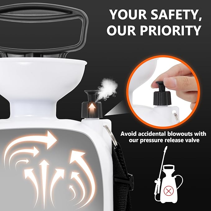 - 【Safety Valve Design】For safety considerations, you can pull the built-in safety valve to release the excess pressure when the internal pressure of the spray exceeds the safety threshold, preventing accidental bursting and reducing safety risks during use.