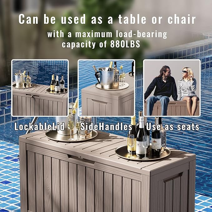 - FROM INDOORS TO OUTDOORS: This terrace deck box is not just for outdoor use; it can also function as an indoor laundry storage chest. Whether storing outdoor cushions, garden tools, pool accessories, it offers plenty of room. Additionally, it serves as a versatile side table, patio seat, storage bench, or footstool