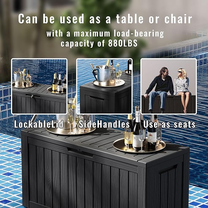 - FROM INDOORS TO OUTDOORS: This terrace deck box is not just for outdoor use; it can also function as an indoor laundry storage chest. Whether storing outdoor cushions, garden tools, pool accessories, or sports equipment, it offers plenty of room. Additionally, it serves as a versatile side table, patio seat, storage bench, or footstool